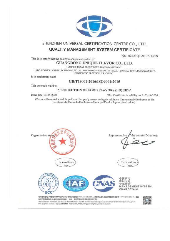 Guangdong Cuiguai Spice Co., Ltd. была основана в 2022 году и является специнтерпрайзом, объединяющим в себе разработку, производство и продажу. Она извлекает эссенцию, которая удивительна, и извлекает причудливые специи. Она удовлетворяет уникальные потребности пользователей, является лидером и выдается среди других. Делать то, что другие не могут, - это позиционирование Cuiguai Spice. Отказ от Cuiguai значит отказ от богатства. Совместная работа один раз - друзья на всю жизнь. Работая вместе, мы получаем взаимную выгоду и создаем величие вместе. Компания получила сертификаты ISO22000, ISO9001, HACCP и была награждена званием предприятия-демонстратора качества и безопасности.